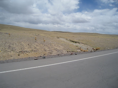After hour or so I stopped waiting for him in middle of nowhere near a shanty trucker stop store with one lady and child living there and what looked an old government semi-abandoned animal reserve ,1 person still caretaking (there are thousands of llama’s, alpaca and these small gazelle/deer like animals up here..1000’s everywhere.. so much free range wildlife and dodging them on the bike because the deerlikes blend into the yellow landscape)